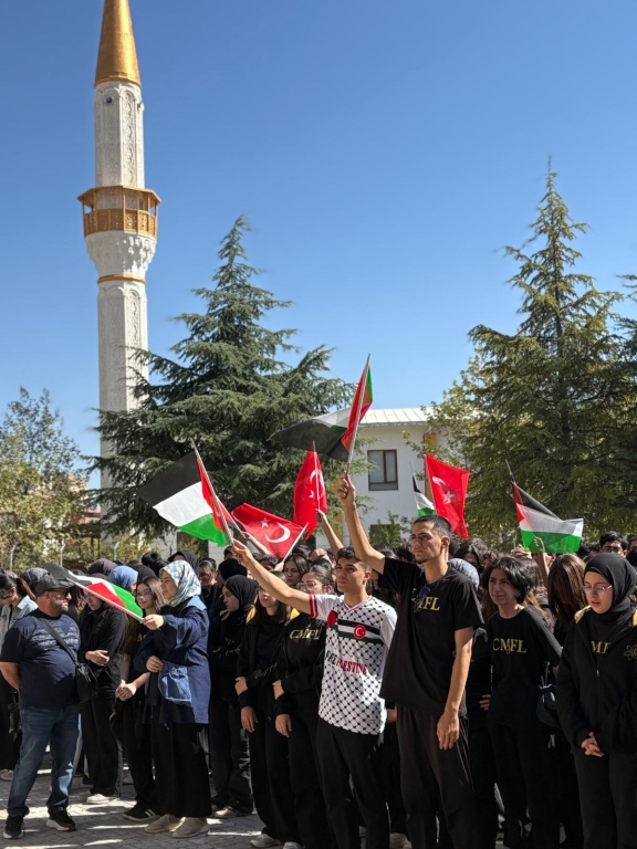Okulumuzda, Filistin halkına destek amacıyla anlamlı bir etkinlik gerçekleştirildi.Etkinlikte Filistin’in yaşadığı zorluklara değinilirken, barış, özgürlük ve adalet vurgusu ön plana çıktı.
